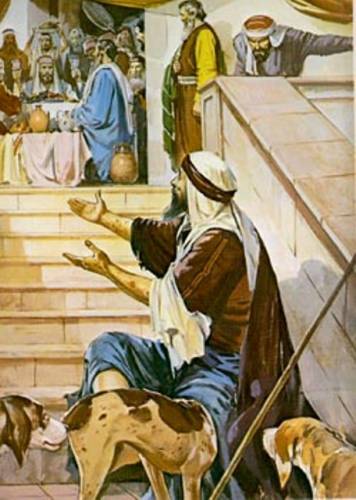 Uno de los textos más penetrantes de esta búsqueda, el Salmo 73, puede considerarse en este sentido como el trasfondo espiritual de nuestra parábola. Allí vemos como cincelada la figura del rico que lleva una vida regalada, ante el cual el orante -Lázaro- se lamenta: «Envidiaba a los perversos, viendo prosperar a los malvados. Para ellos no hay sinsabores, están sanos y orondos; no pasan las fatigas humanas ni sufren como los demás. Por eso su collar es el orgullo… De las carnes les rezuma la maldad… su boca se atreve con el cielo… Por eso mi pueblo se vuelve a ellos y se bebe sus palabras. Ellos dicen: "¿Es que Dios lo va a saber, se va a enterar el Altísimo?"» (Sal 73, 3-11).