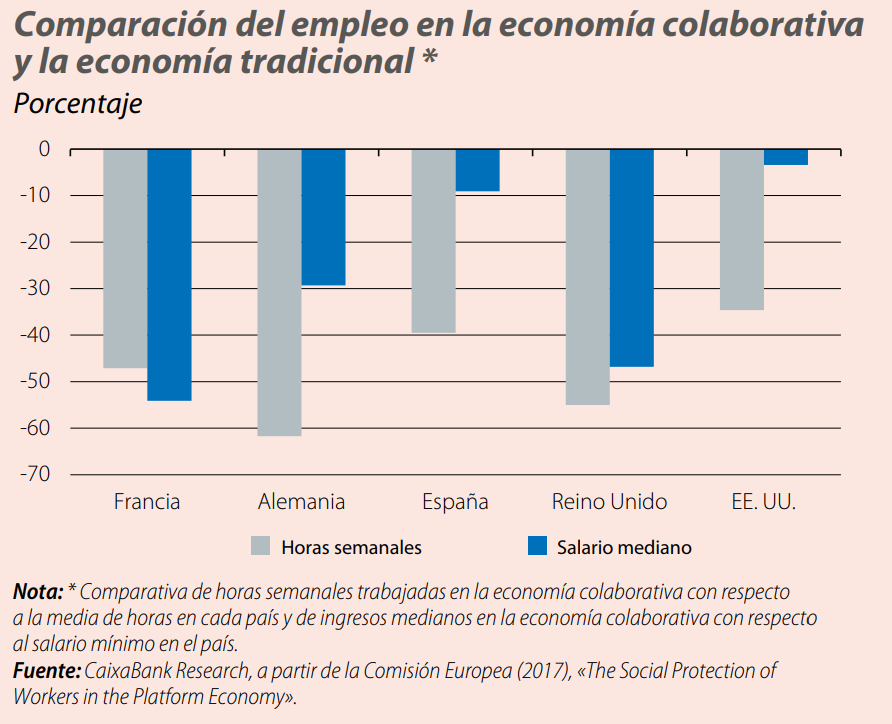 Caixabank research ha publicado un estudio que muestra la cara oculta de la economía colaborativa. A pesar de la visibilidad de algunos empleos que se han generado a través de la sharing economy (piense solamente en las bicicletas de reparto de comida a domicilio que han aparecido en la mayoría de ciudades), es difícil estimar con precisión cuánta gente trabaja en el sector.