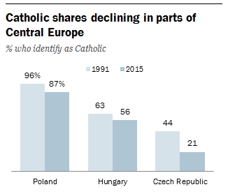 Los católicos, a menos en Polonia, Hungría y Chequia
