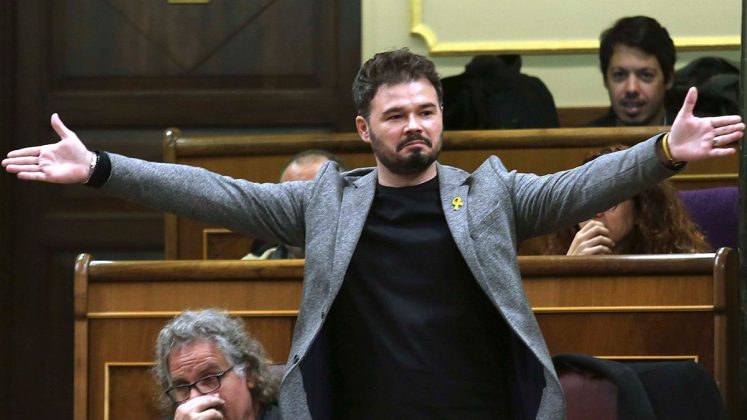 Rufián siempre ha cabalgado, en cambio, sobre posiciones asentadas en un dominio político muchísimo más instalado y confortable. Se encumbró, con enorme rapidez, hasta lugares de jerarquía en el segundo partido de gobierno en Cataluña. Reunía unos requisitos óptimos: el cantonalismo de base menestral, carlistoide y supremacista que arrastra Esquerra Republicana, desde siempre, podía sacar a pasear a un charnego moderno y vivales de origen suburbial, como modelo del converso enrollado y trendy hacia el espléndido horizonte de la independencia inclusiva y transversal. Un tipazo atractivo, engreído y algo matón, con una espontaneidad y una seguridad envidiables. Un sujeto incapaz de despeinarse ante nada. Al poco de llegar a Madrid para coliderar su grupo parlamentario en las Cortes, con sus groseros insultos y descalificaciones, junto a sus vistosos desplantes en las sesiones solemnes de la Cámara y su torpedeo de ocurrencias en Twitter, se convirtió en un personaje favorito de buena parte de las tribunas mediáticas. Una verdadera joya, en términos del desvergonzado populismo que señorea en estos tiempos. Le tocó beber de sus pócimas, sin embargo, cuando fue hostigado y repudiado como traidor a la patria —con gritos estentóreos de «botifler»—, en una de las demostraciones de protesta tras la sentencia del Tribunal Supremo en octubre de 2019, en el centro de Barcelona. Los vituperios y acusaciones llegaron al punto de obligarle a abandonar la manifestación. Como su formación política había comenzado el viraje que meses después le conduciría a apuntalar al PSOE en Moncloa, pactando unas «mesas de diálogo» para encontrar salida a la enquistada situación catalana y renunciando a plasmar la República independiente —durante un tiempo, al menos— conoció el escarnio en términos parecidos a los que él mismo había lanzado contra la presidencia de la Generalitat en los tormentosos días de otoño de 2017, en vísperas de la Declaración de Independencia.
