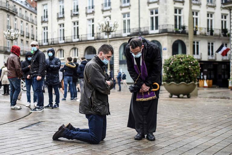 En Nantes, Burdeos o incluso en Hauts-de-Seine, se han autorizado determinadas reuniones de católicos. Así, tuvo lugar una manifestación el domingo en Burdeos frente a la catedral de Saint-André, place Pey-Berland. Entre los más de 300 católicos reunidos, algunos cantaron oraciones y se arrodillaron.