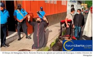 Mons. Álvarez, Obispo de Matagalpa, y seis sacerdotes y seis laicos, están actualmente bajo arresto domiciliario, vigilados por decenas de policías antidisturbios y retenidos en la Curia Episcopal de Matagalpa desde el último viernes 3 de Agosto, día en que fueron impedidos de salir para celebrar la Misa.