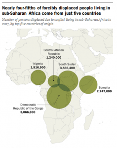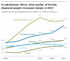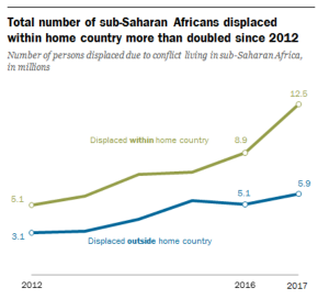 “Con más de mil millones de personas viviendo en el África subsahariana, el número de personas desplazadas en la región representó solo el 1,8% de la población de la región en 2017. Sin embargo, esta proporción ha aumentado en los últimos años y se encuentra en su nivel más alto desde los registros sobre las personas desplazadas que empezaron en 1993”.