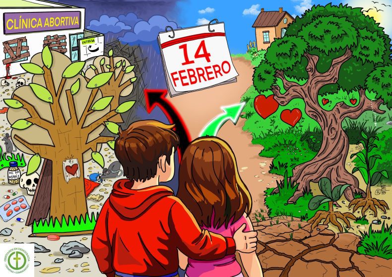 Lejos de liberar, esta cultura puede terminar generando soledad, inseguridad afectiva y miedo al compromiso duradero; Y lo que es peor, las cifras de abortos, enfermedades de transmisión sexual y embarazos no paran de crecer en España, como ha plasmado magristralmente Jucho en la viñeta que acompaña a nuestro post de hoy, en la que 2 jóvenes se enfrentan a 2 caminos muy diferentes para comenzar a vivir su noviazgo.