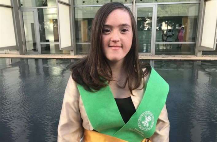 La joven Blanca San Segundo, de 30 años, es la primera persona con síndrome de Down que finaliza un Grado universitario en España. Blanca es la primera graduada en Terapia Ocupacional en España y lo ha cursado en la Universidad Católica de Valencia.