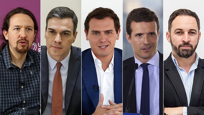 Pedro Sánchez, Pablo Casado, Albert Rivera, Pablo Iglesias y Santiago Abascal son los líderes políticos que más votos obtuvieron en las pasadas elecciones. Y son los mismos cabezas de lista que optan a liderar la política española desde la Moncloa.